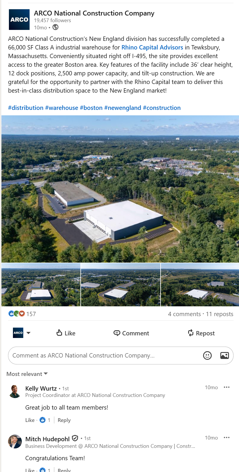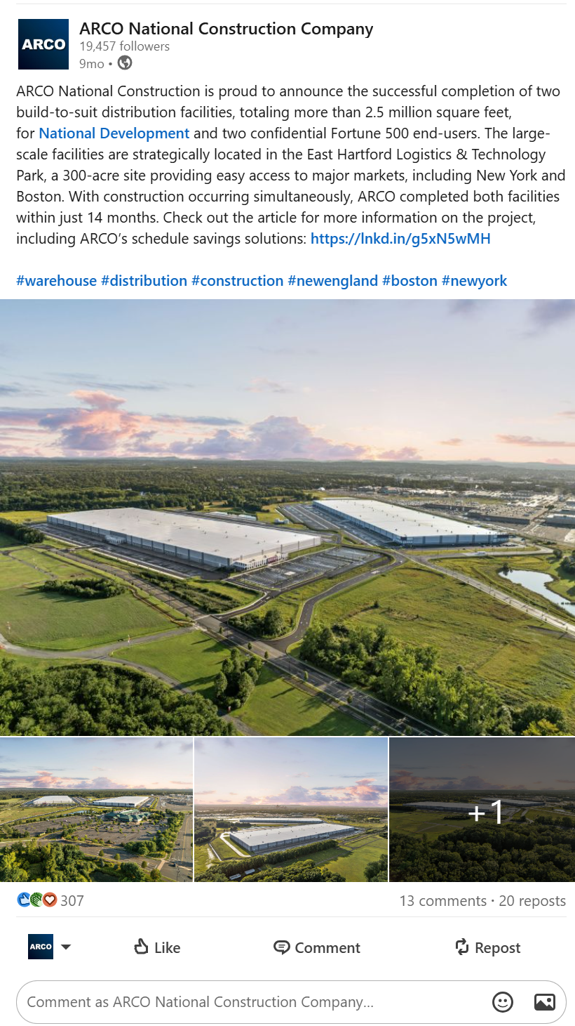Since launching the MCC and GMA pages in 2023, both brands have experienced consistent quarter-over-quarter growth in followers, while ARCO National and ARCO Beverage Group have also maintained steady upward engagement trends. These results indicate that shared project content does not negatively impact performance across brands. In fact, despite having smaller audiences, the concrete, beverage, and architecture divisions achieve strong engagement rates relative to their organic impressions, reflecting the strength and connectivity of their niche communities.